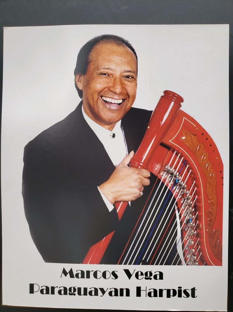 The distinctive playing techniques and musical elegance developed by Marcos Vega has revolutionized the Paraguayan Harp. The extensive variety of his repertoire demonstrates the versatility of Marcos and his instrument.